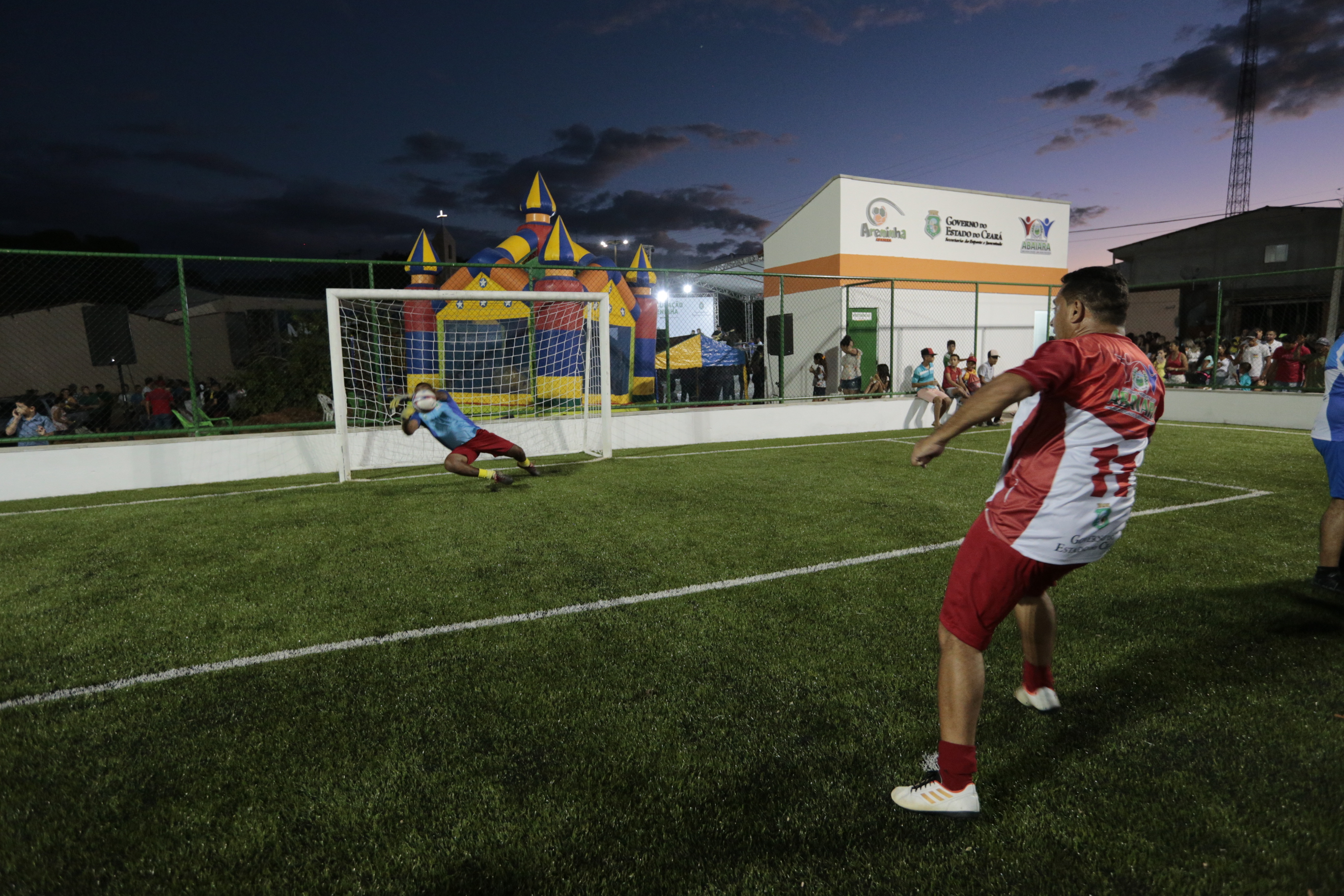 “Pra nós e uma alegria muito grande. Vocês vão ver quanta gente vai utilizar essa areninha. Esse projeto começou em Fortaleza e o governador Camilo Santana copiou o projeto. Hoje nós já temos 53 funcionando em todo o Estado e mais umas 60 prontas para serem inauguradas. Elas servem muito para fortalecer o esporte, para evitar que as nossas crianças e os nossos jovens vão para o caminho das drogas”, destacou.