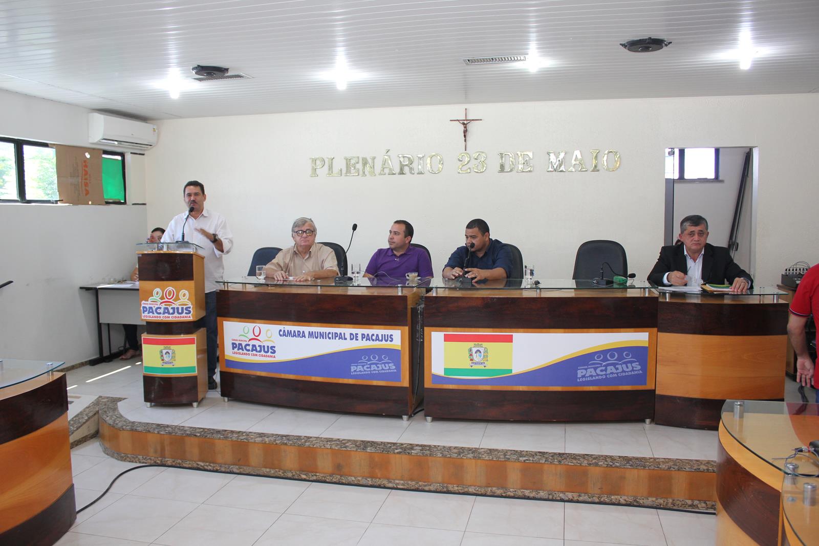 O deputado estadual Moisés Braz (PT) e o deputado federal José Guimarães (PT) participaram na manhã desta sexta, 5 de maio, de audiência pública na Câmara Municipal de Pacajus para debater a Reforma Trabalhista e a Lei da Terceirização. A primeira foi aprovada na Câmara e seguiu para o Senado, enquanto a segunda já foi sancionada pelo presidente Temer. A audiência atende a requerimento do vereador Reginaldo Bento (PT), e conta com a participação de todos os parlamentares do município, além do prefeito Flanky Chaves e os ex-prefeitos Lúcio Flávio e José Wilson.
