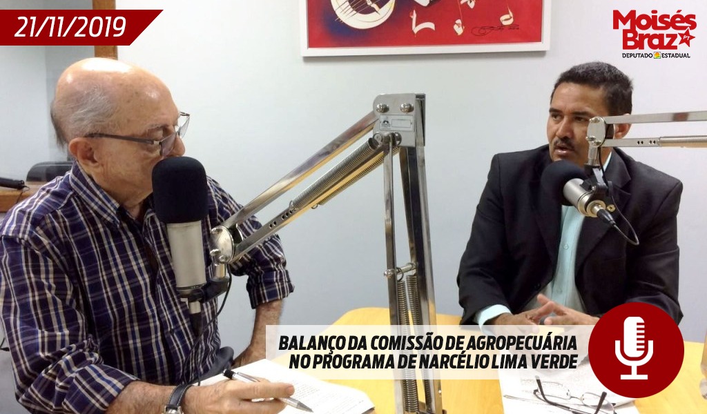 Na manhã desta quinta, 21/11, o presidente da Comissão de Agropecuária da Assembleia Legislativa, deputado estadual Moisés Braz (PT), concedeu entrevista ao programa Narcélio Limaverde, da FM Assembleia. Na ocasião, Moisés apresentou um breve balanço das atividades do colegiado no ano de 2019.